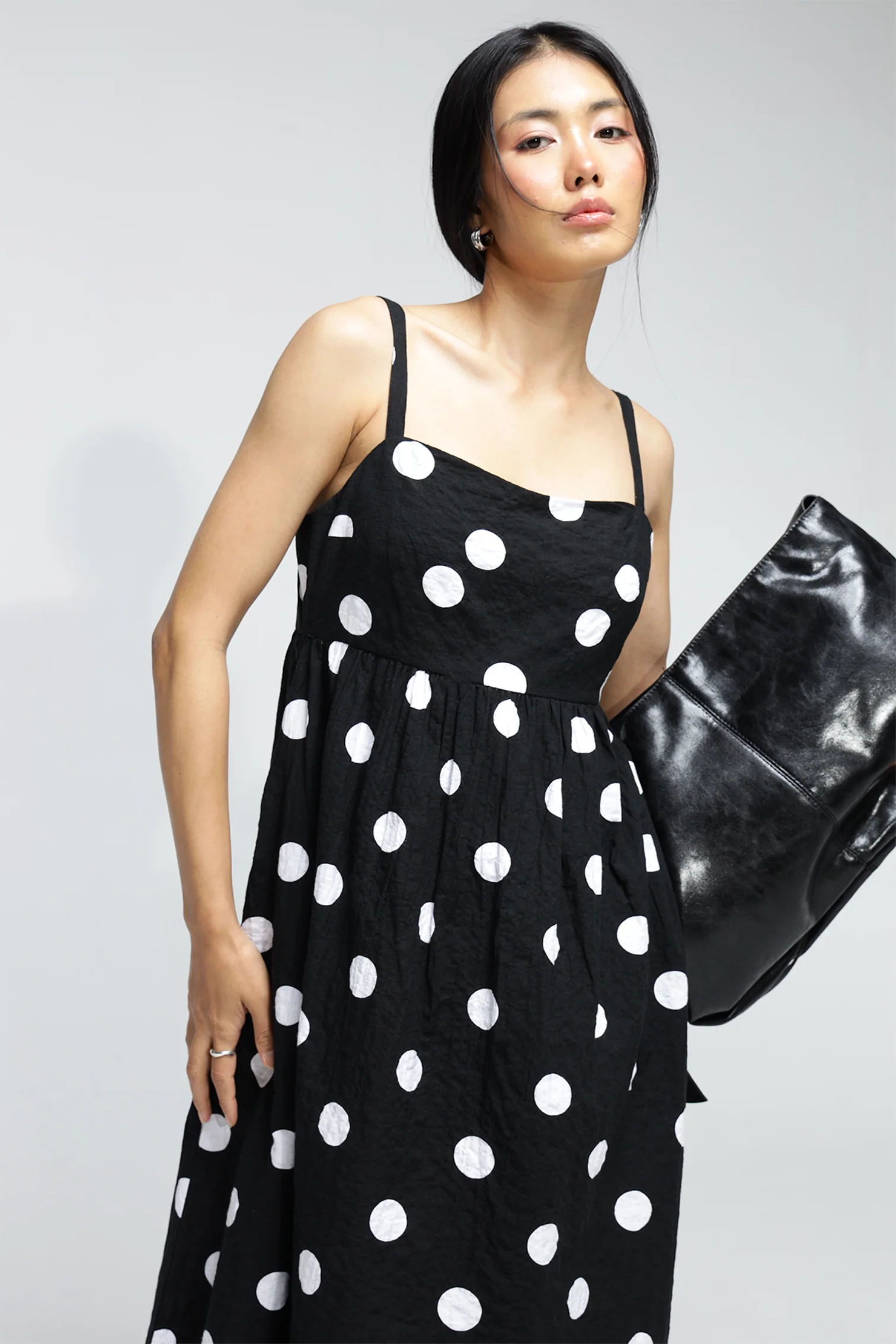 Shyla Pocket Dress : White Polka