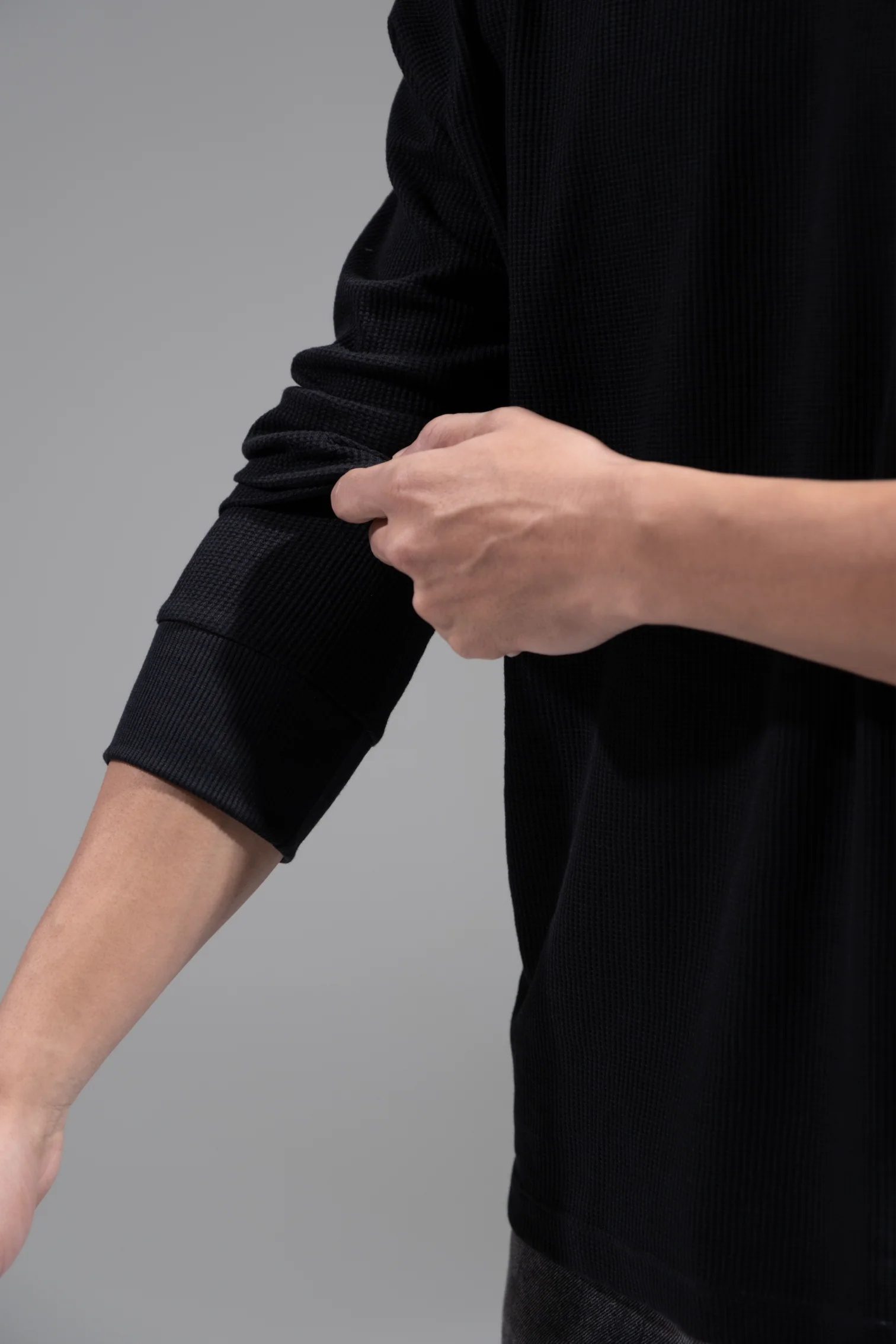 -70%Waffle Long Sleeve T-Shirt - Black—